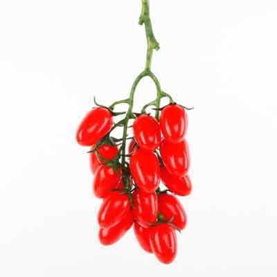 One bunch of small cherry or grape tomatoes on the vine. All artificial. Measures 4" X 3" X 8". Perfect for vegetable arrangements or garden basket displays! For decorative use only.