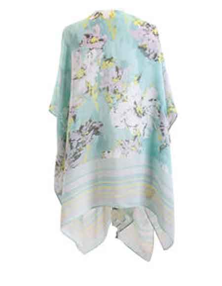 Blue and yellow pastel floral Duster by Demdaco Studio Design is the perfect length to pair with leggings. Wear with jeans, slacks, or skirts! Easy to wear every day- dressed up, down, or for special occasions. Added arm coverage gives a loose, flowing look. High quality herringbone polyester. Hand wash in cold water, hang to dry. No bleach. One size fits most. 44"W X 32"L