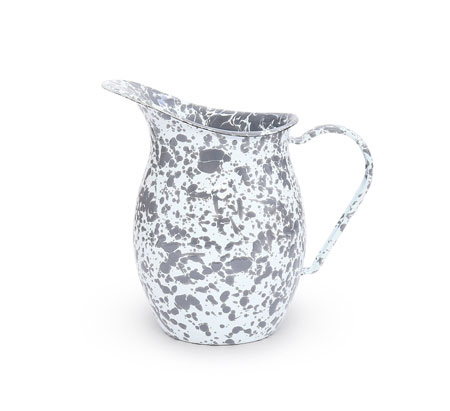 Crow Canyon Home small enamelware light grey marble pitcher, 7". Holds 1 Quart.