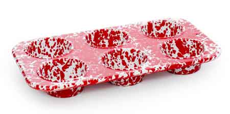 Crow Canyon Home Enamelware Red Marble MuffinPan, 12" X 7" X 1.25". A colorful way to bake and present your favorite muffins!