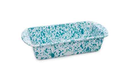 Crow Canyon Home Enamelware Turquoise Marble Loaf Pan, 9" X 5". A colorful way to bake and present your bread! Great for meatloafs and cakes too!