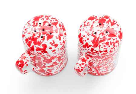Crow Canyon Home Enamelware Salt & Pepper Shaker Set, Enamelware. 4"T, 2.75" diameter. Plastic bottom. Perfect for rangetop or tabletop.