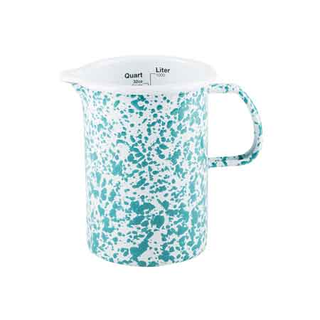 Crow Canyon Home enamelware turquoise marble measuring pitcher.
